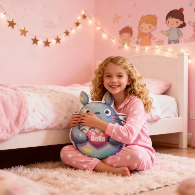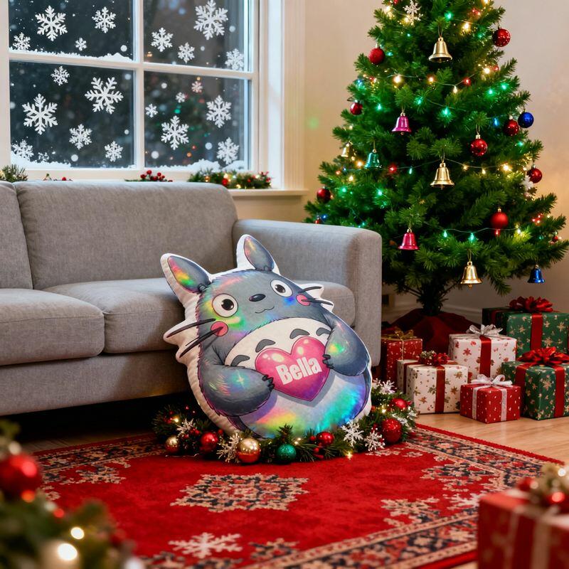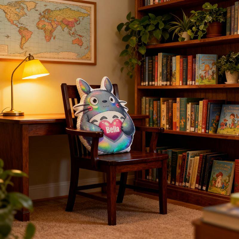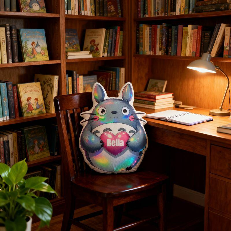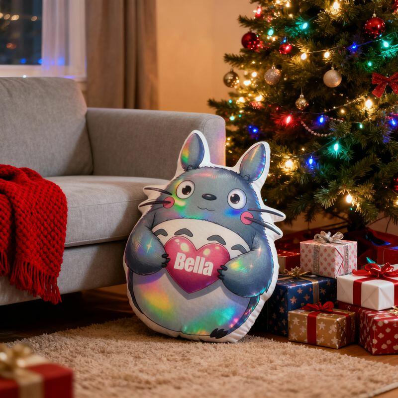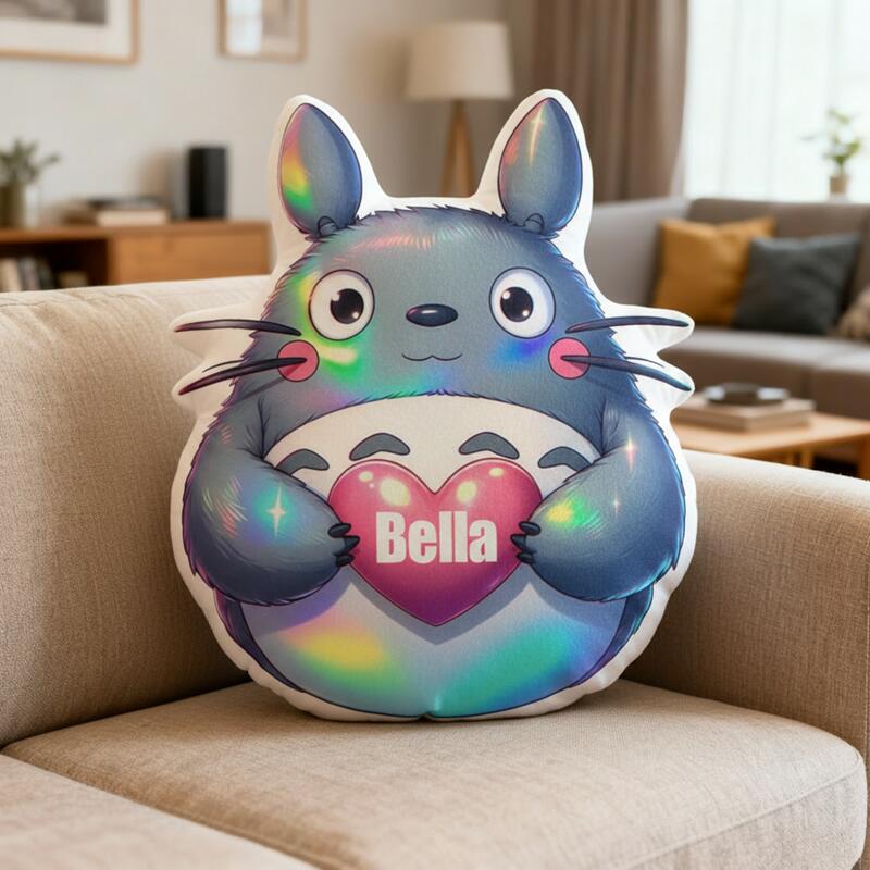Cuscino personalizzato a forma di cartone animato con simpatico Totoro che tiene un cuore Regalo perfetto per i bambini