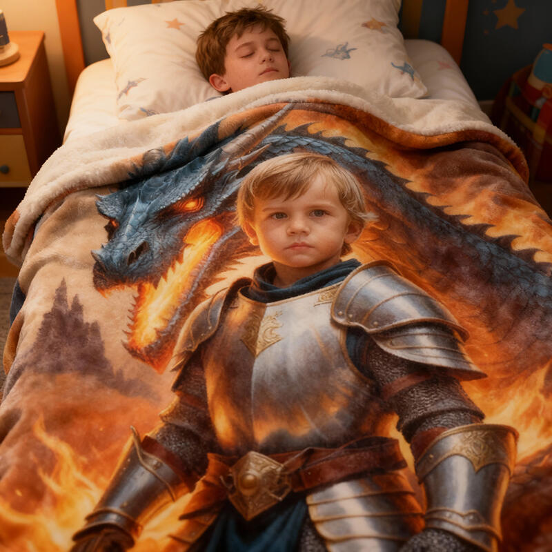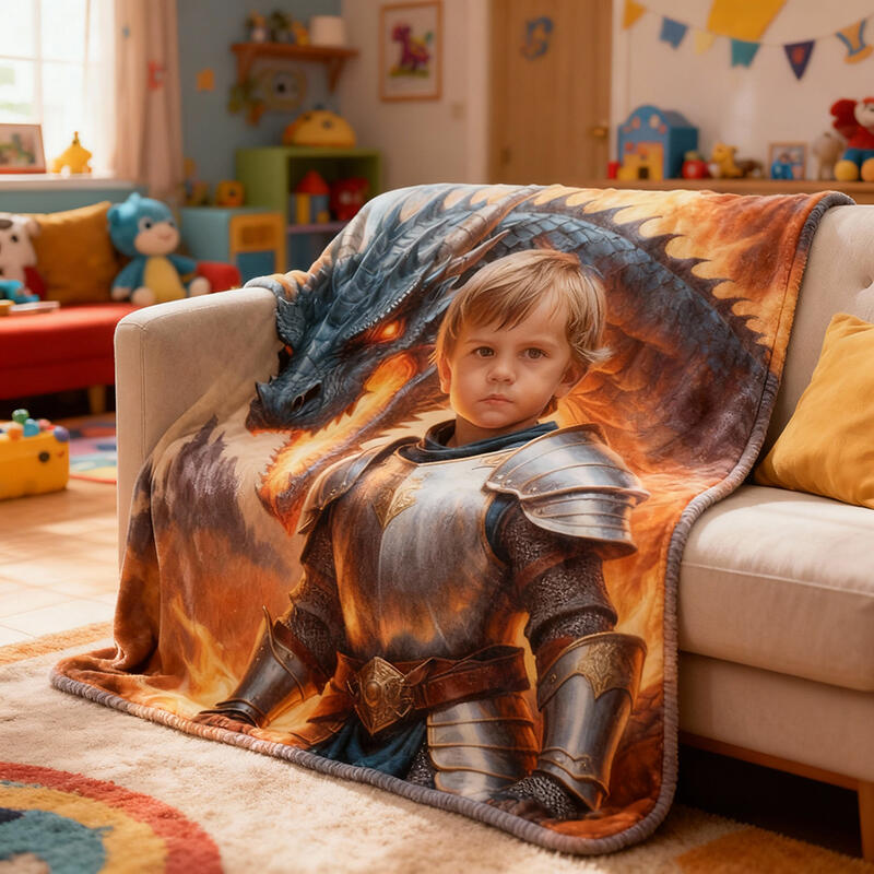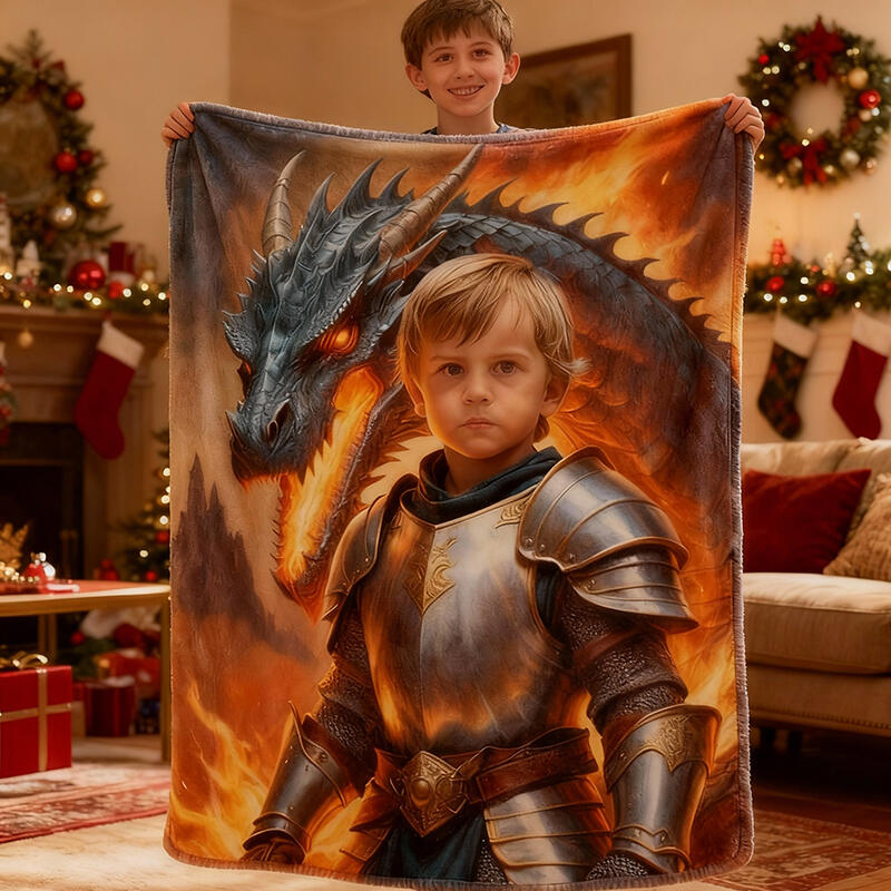 Coperta personalizzata con ritratto del viso design guerriero regalo creativo per bambini