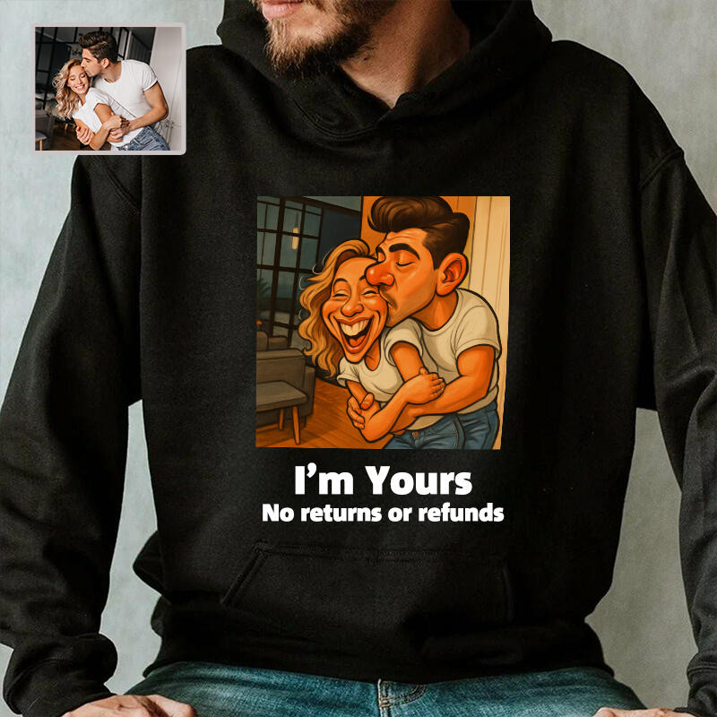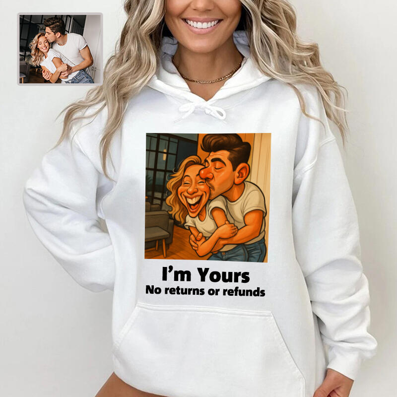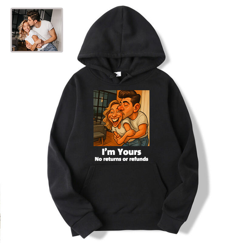 Felpa con cappuccio personalizzata Foto personalizzata della coppia Design divertente in stile fumetto Regalo attraente per gli innamorati