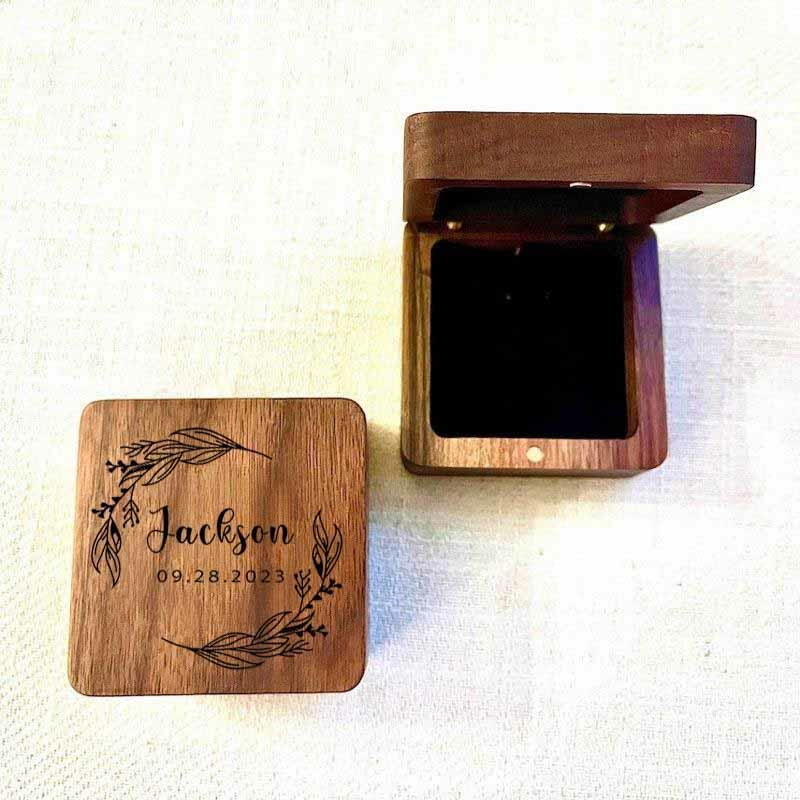 Scatola per collana in legno con nome personalizzato e motivo a foglie Miglior regalo per l'anniversario