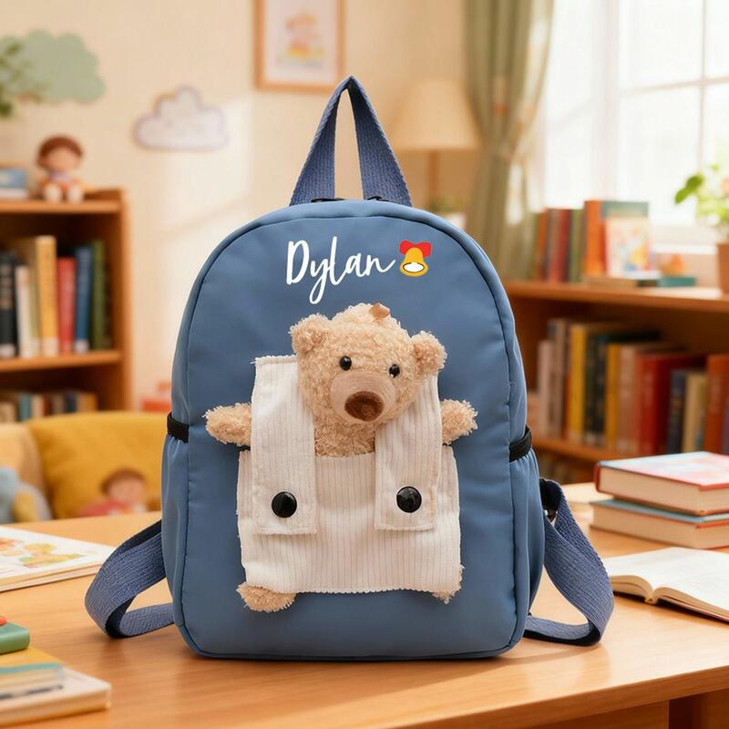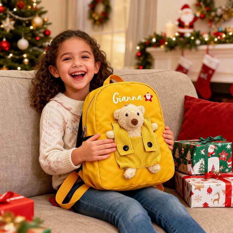 Zaino personalizzato con orsacchiotto e varie piccole icone stampate Regalo di Natale per bambini