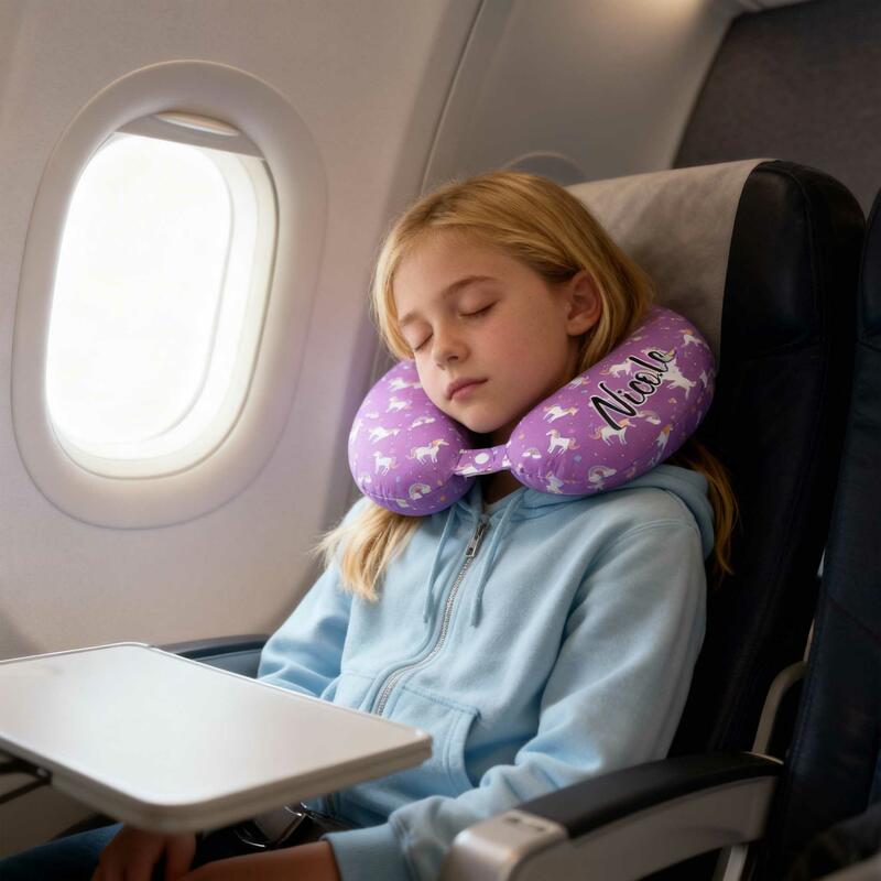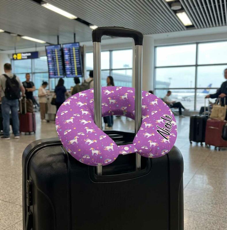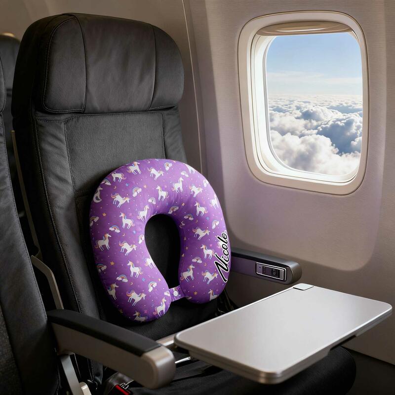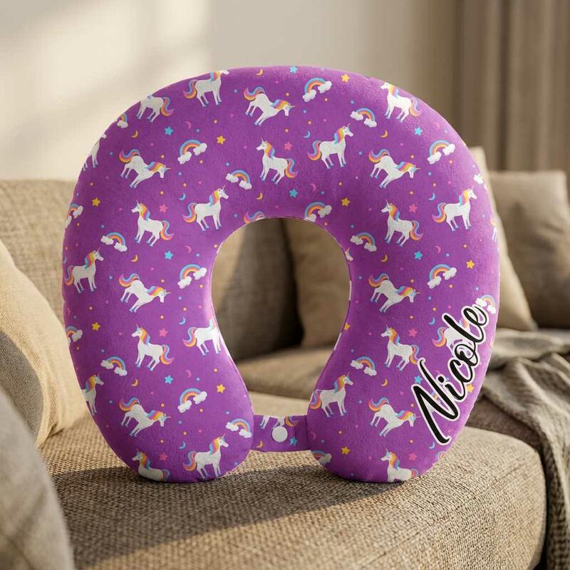 Cuscino personalizzato a forma di U con motivo unicorno personalizzabile con il tuo nome regalo da viaggio per ragazze
